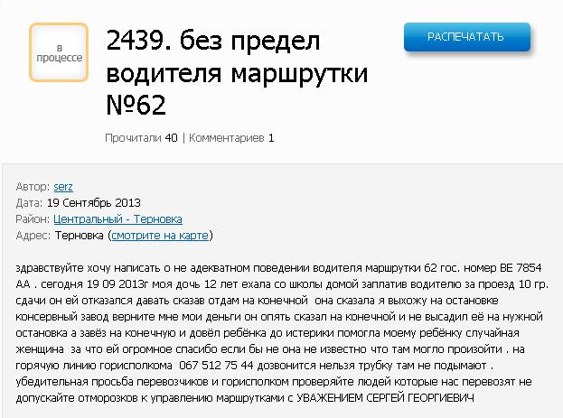 Местный житель Николаева пожаловался на неадекватное поведение водителя маршрутного такси №62, который отказался давать его дочери сдачи и высадил 12-летнего ребенка на конечной остановке.