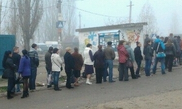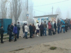 Сегодня утром, 29 октября, жители Матвеевки вынуждены были около получаса простоять в огромной очереди, чтоб уехать на работу и учебу.
