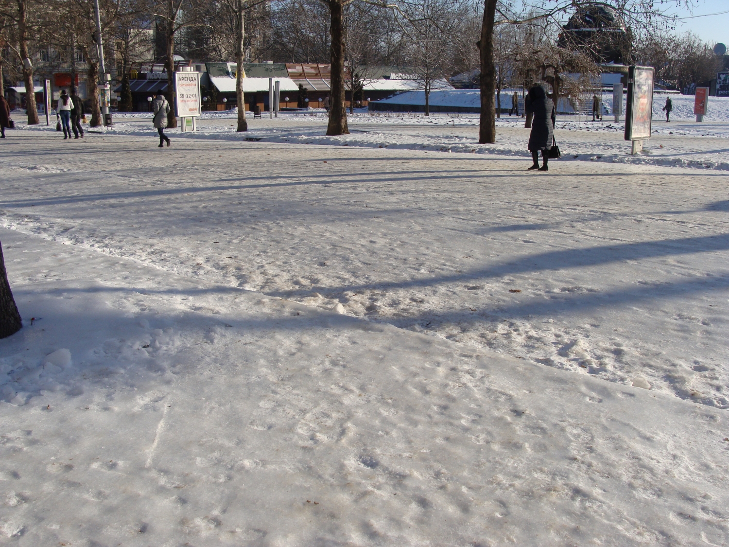 - на коммунальные службы надеяться не приходится. Вот предпринимателей обязали чистить у себя.Они почистили у себя под окнами тридцатиь сантиметров да и все. В принципе, может они и правы, ведь они платят налоги и считают, что этого достаточно, чтобы власти потратили из этого хоть что-то на людей и нашли возможность посыпать песком центральную улицу.