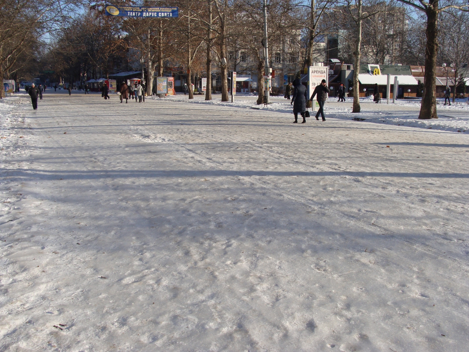 Центральная улица Николаева похожа на каток, а горожане считают, что в городе закончился песок