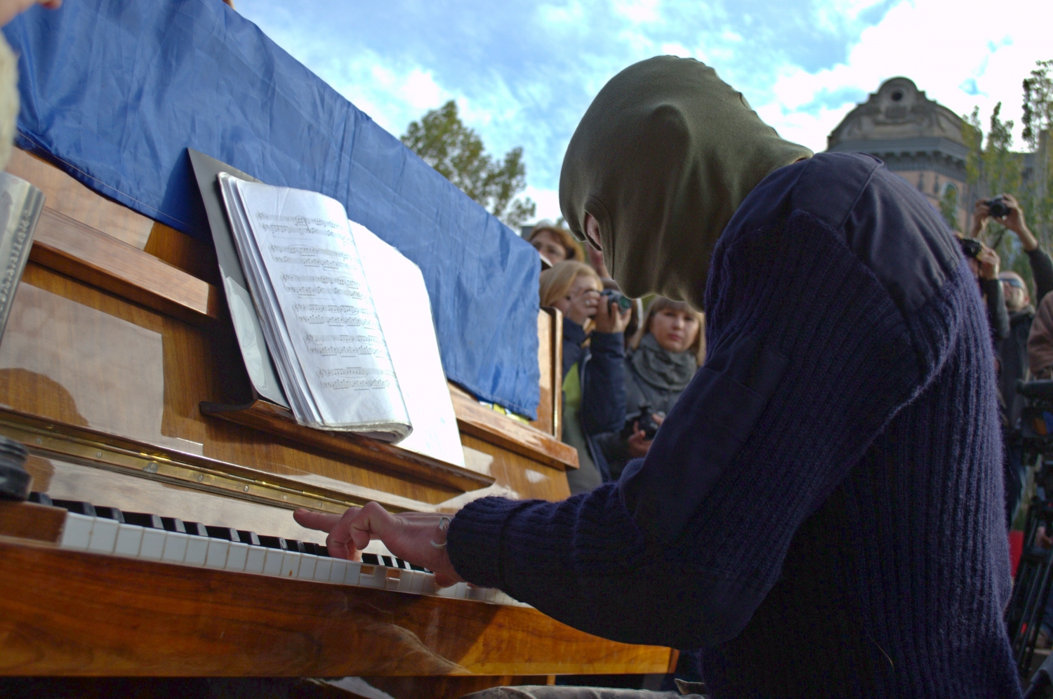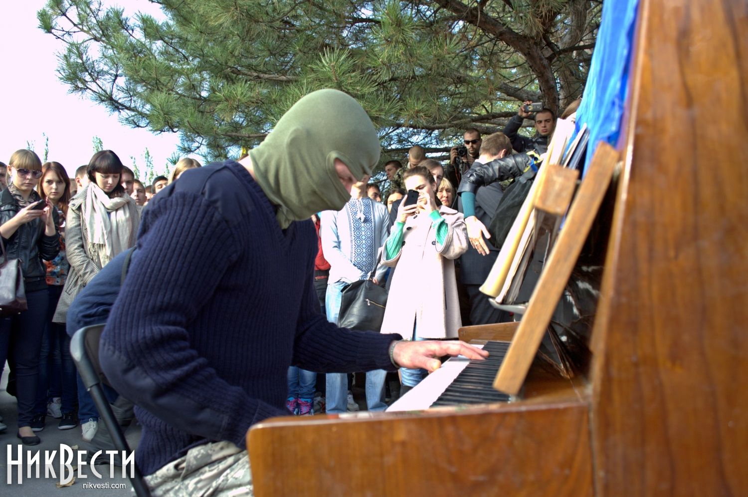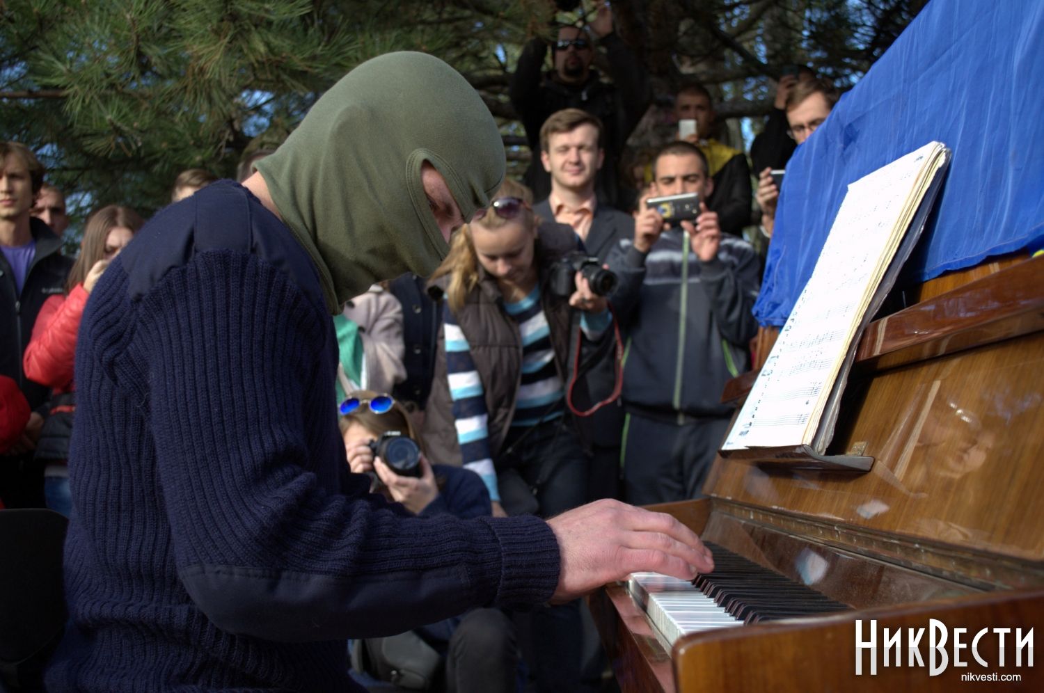 Один из живых символов Майдана – музыкант под именем Piano Extremist сегодня, 4 октября, выступил перед николаевской публикой на главной площади города.