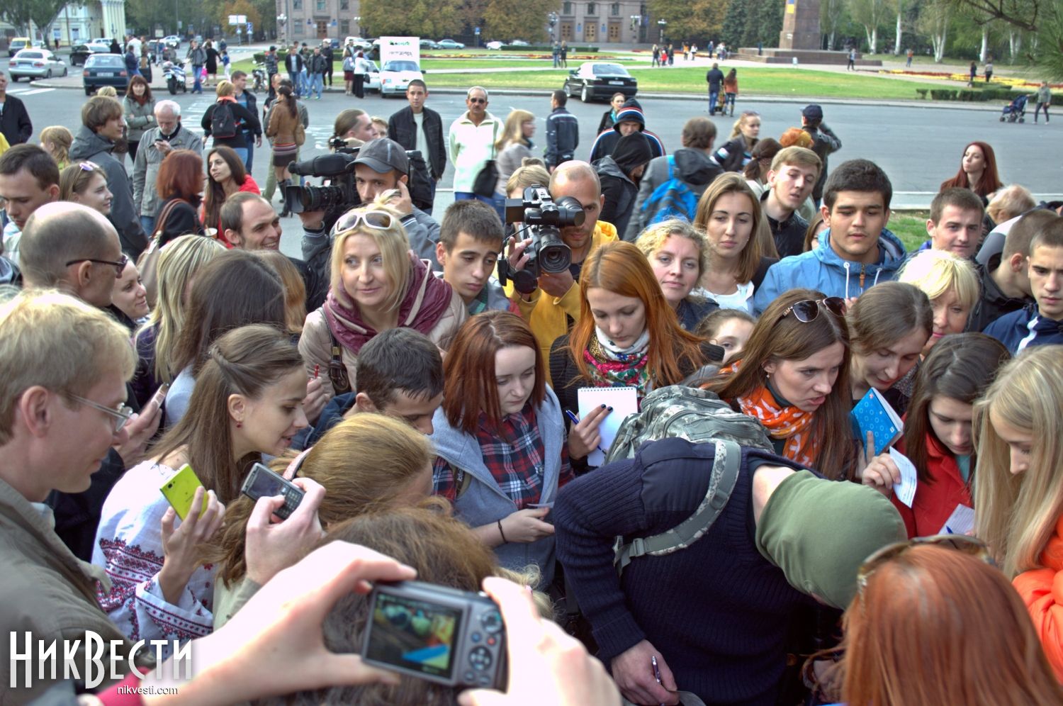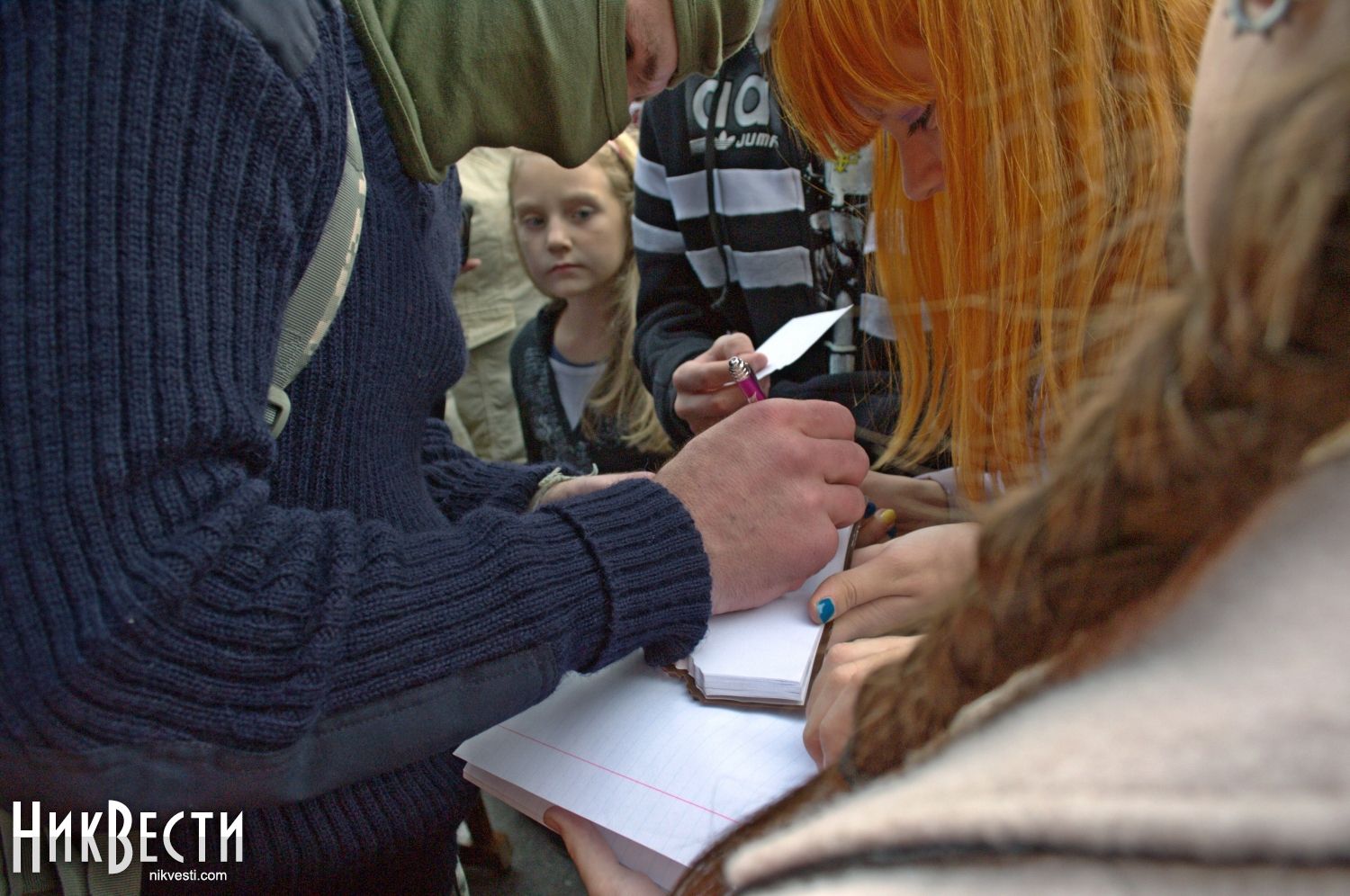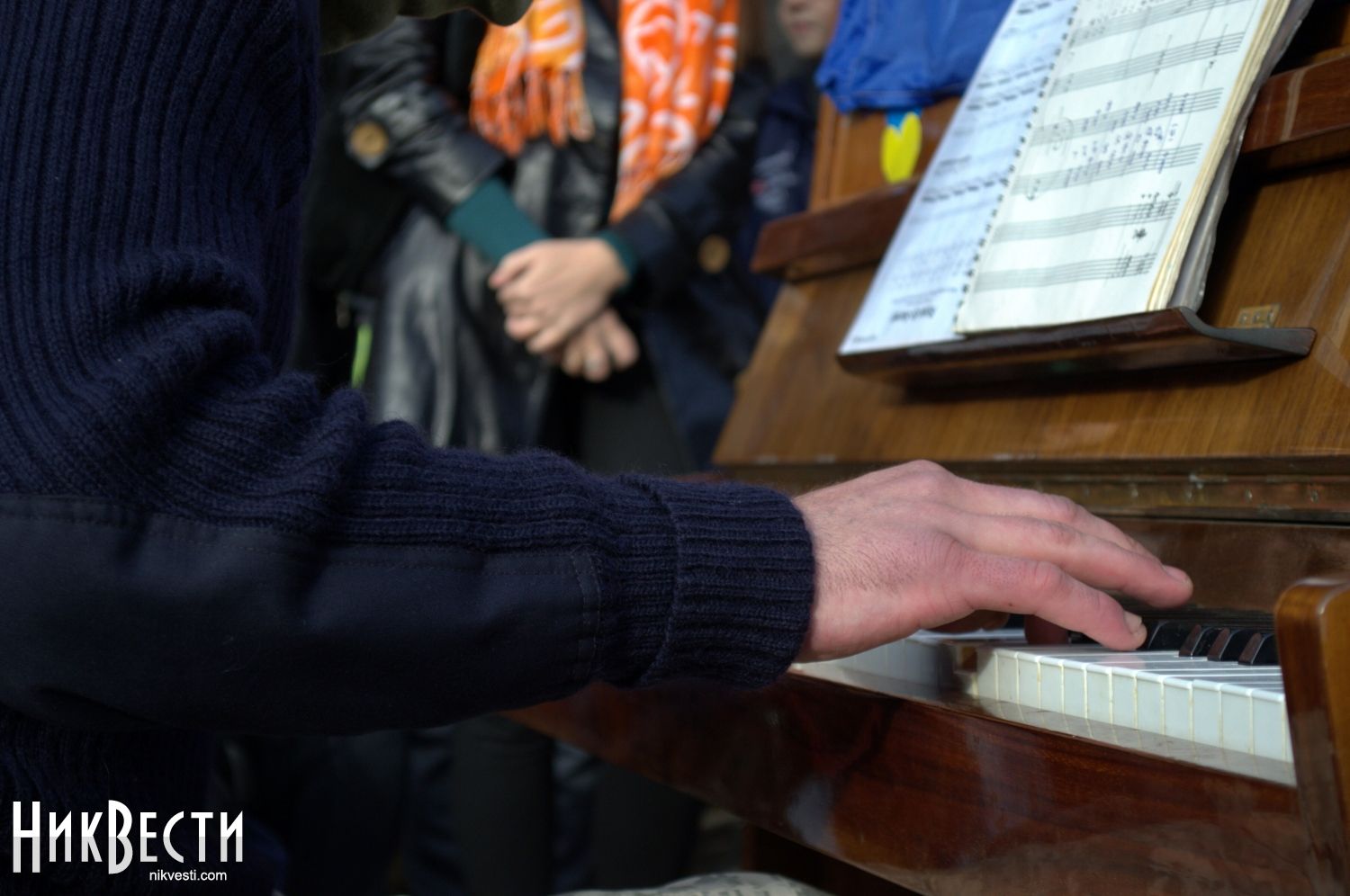 В какой-то момент музыкант попросил николаевцев подойти ближе, объяснив это тем, что ему необходимо чувствовать слушателей. И многие с искренней радостью откликнулись на эту просьбу. А кое-кто даже помогал «экстремисту» переворачивать листы с нотами.