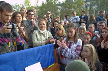 Послушать и посмотреть на музыканта, который совершил Поступок с большой буквы прошлой зимой, сыграв в революционном Киеве для силовиков из «Беркута», пришло около 300 горожан.