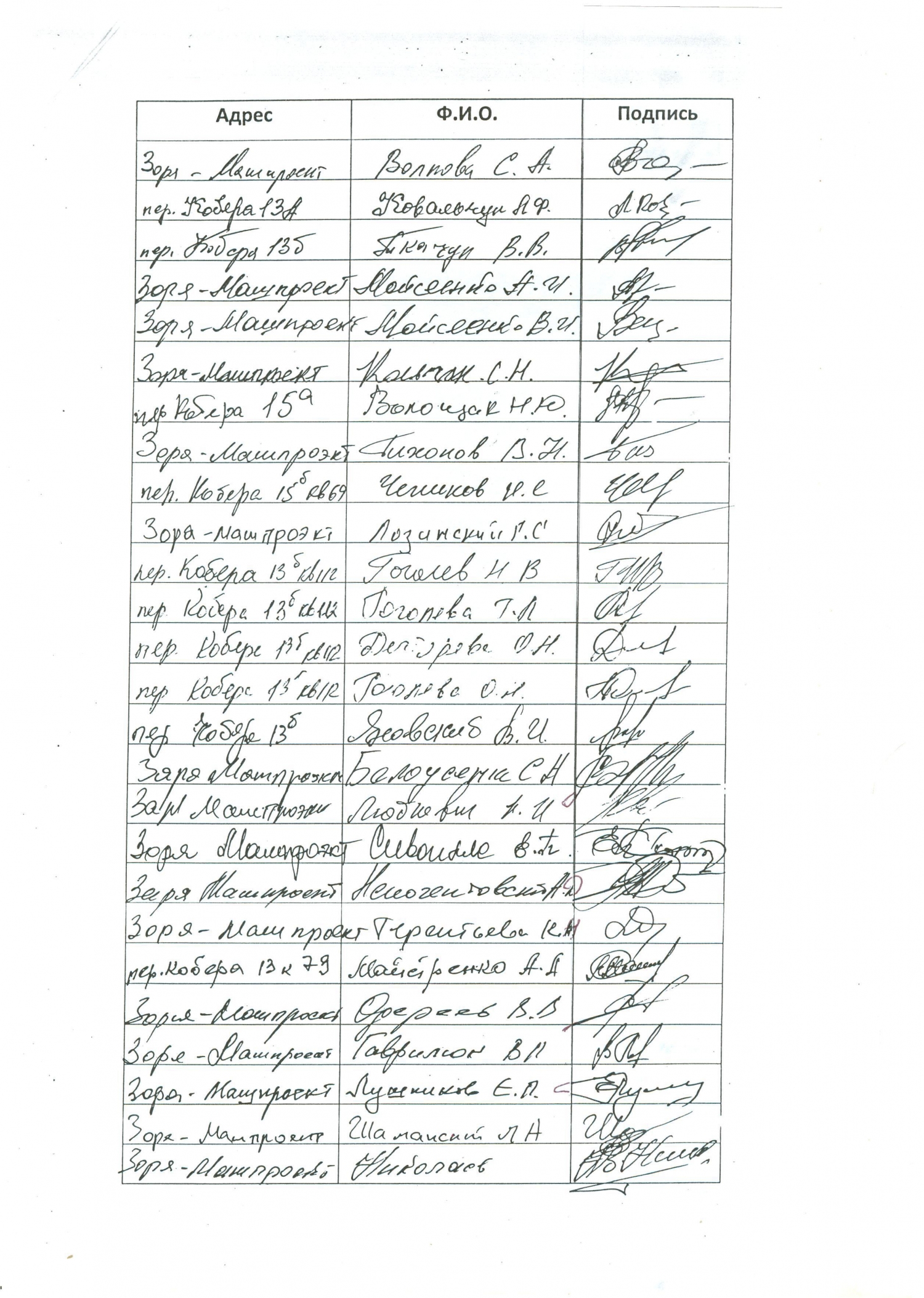 В заключение они привели подписи и потребовали убрать забор и прекратить стройку.