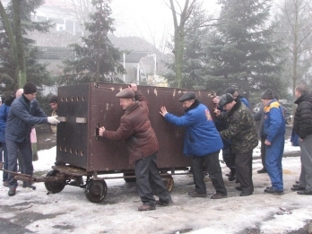 С разгрузкой пришлось немного помучаться. В том числе из-за неожиданно раннего прибытия "подарка". На помощь пришел кран, предоставленный руководителем завода «Экватор» Сергеем Кантором.