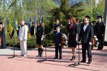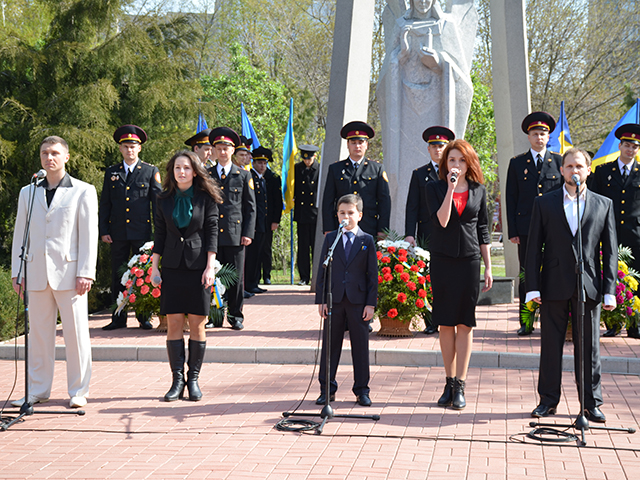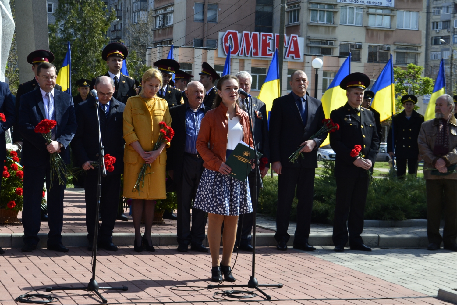 — Представителями от студенчества Николаевского НАУ была студенческий декан факультета ТВППТСБ Иола Белка, которая выступила с речью о важности почитания памяти жертв трагедии и уважительного отношения к окружающей среде. А также с тематической песней выступил «Зотолий голос ННАУ - 2015» Алексей Бровченко, - говорится в сообщении.