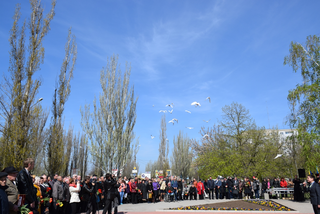 Все участники митинга возложили цветы к памятнику «Скорбный ангел Чернобыля». Во время исполнение «Молитвы за Украину» в небо выпустили голубей как символ мира.