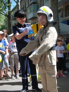 Ко Дню защиты детей спасатели и милиционеры провели яркую акцию на Советской