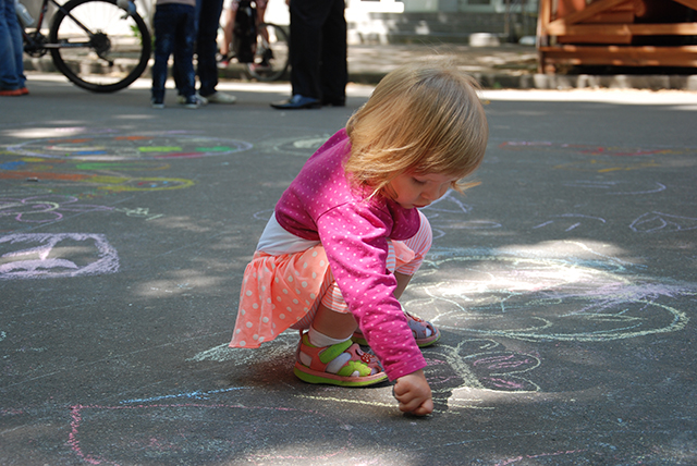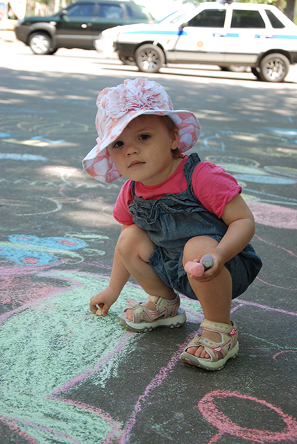 А пока любознательные ребята рассматривали технику и специализированное оборудование, творческая молодежь принимала участие в конкурсе рисунков на асфальте «Мое прекрасное детство». Десятки весельчаков вступили в дружеский поединок, создавая свои рисунки и украшая центральную улицу города яркими красками мела.