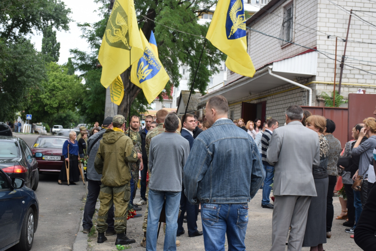 В траурной церемонии прощания приняли участие заместитель председателя облгосадминистрации Оксана Янишевская, а также несколько сотен неравнодушных николаевцев. Провожали Героя под лозунги «Герои не умирают».