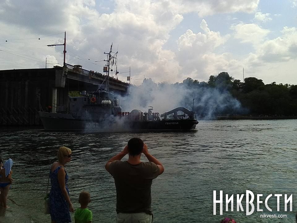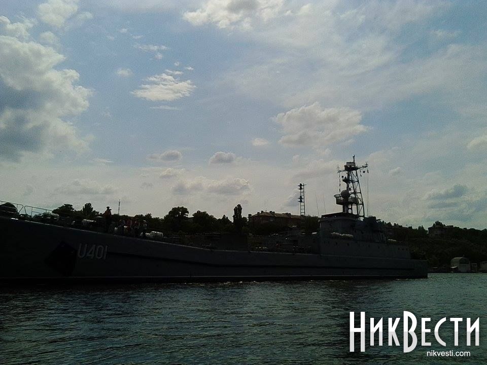 По этому случаю вчера возле акватории Судостроительного завода имени 61 коммунара у Нижней набережной пришвартовались средний десантный корабль «Кировоград», катер связи «Доброполье» и рейдовый тральщик «Геническ», передает корреспондент НикВестей.