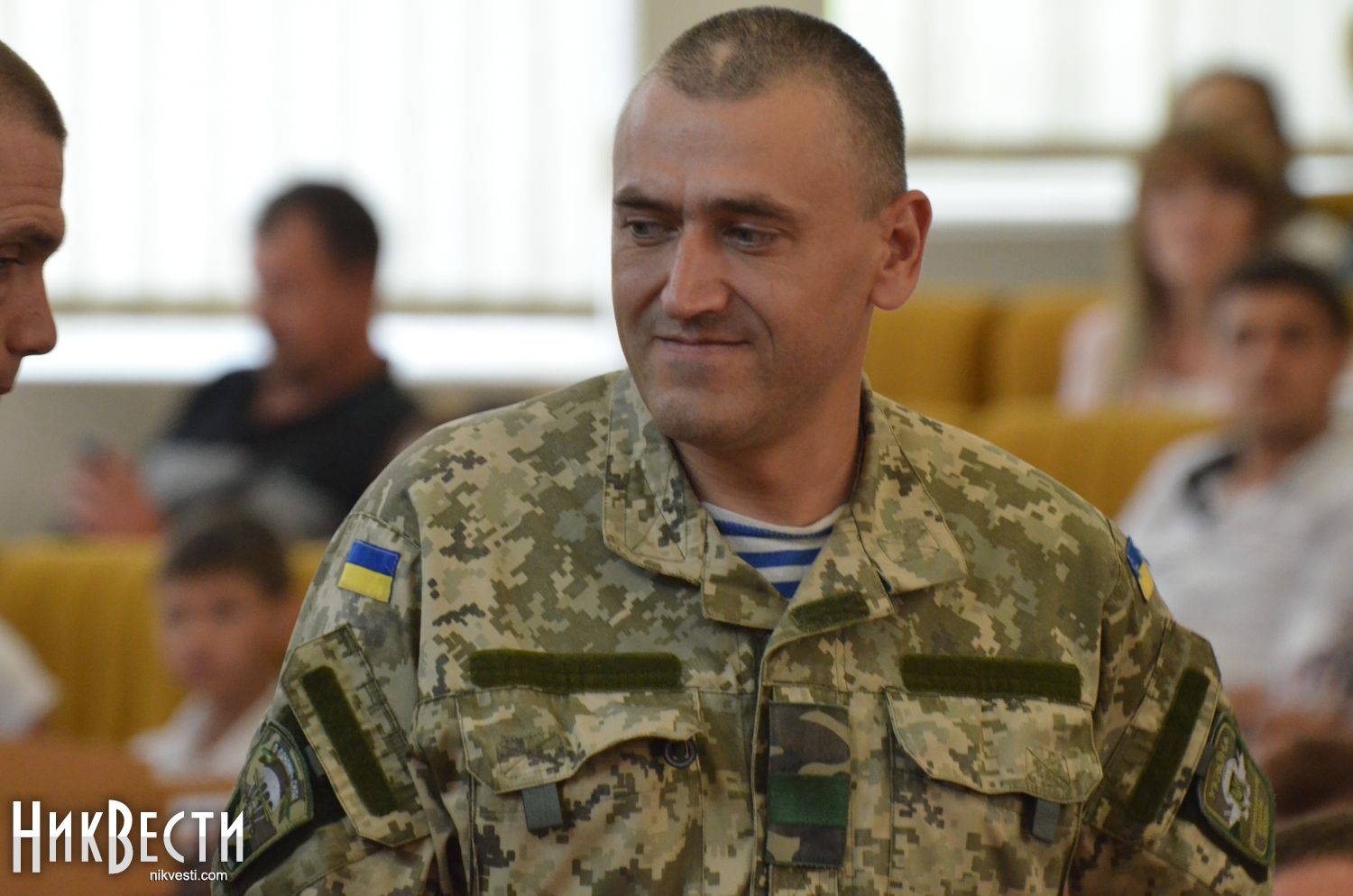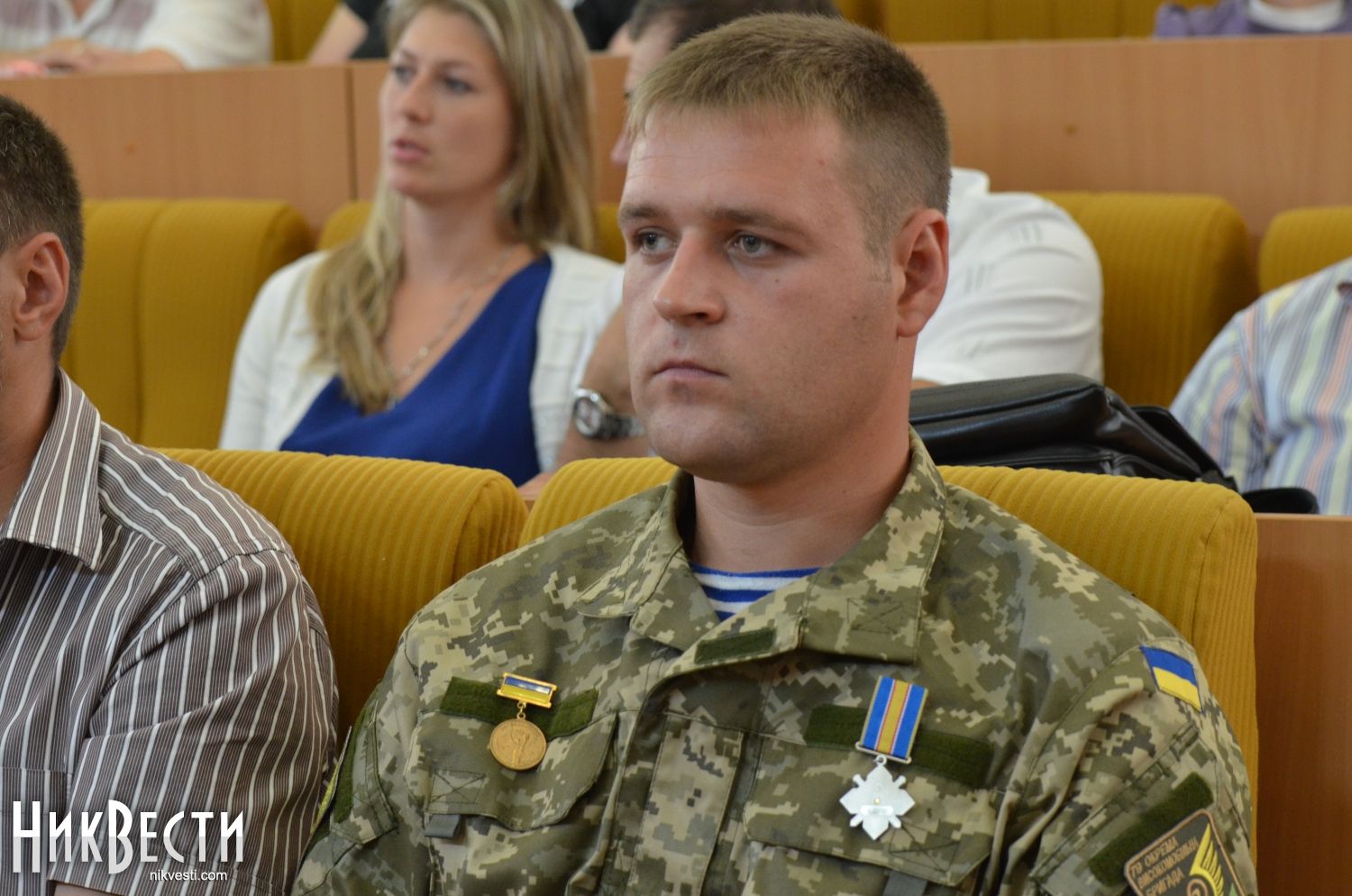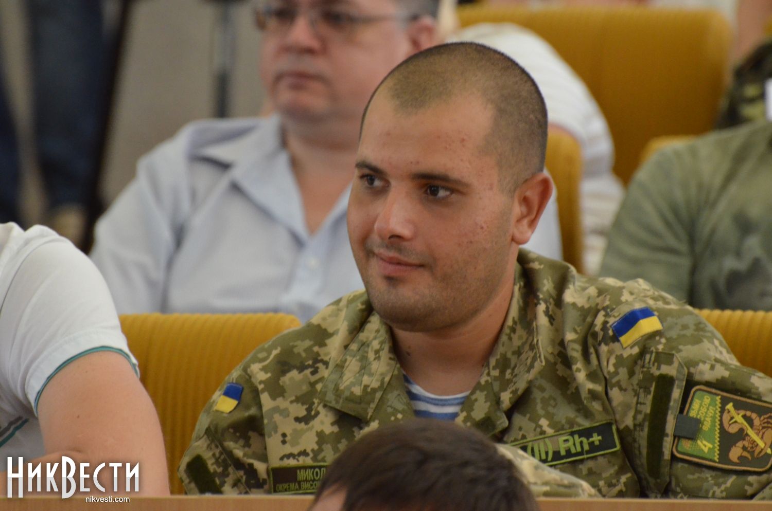 После этого началась церемония награждения николаевских военнослужащих нагрудными знаками «Участник АТО». Помимо Вадима Мерикова, медали вручали заместитель главы областного совета Александр Смирнов и николаевский городской голова Юрий Гранатуров.