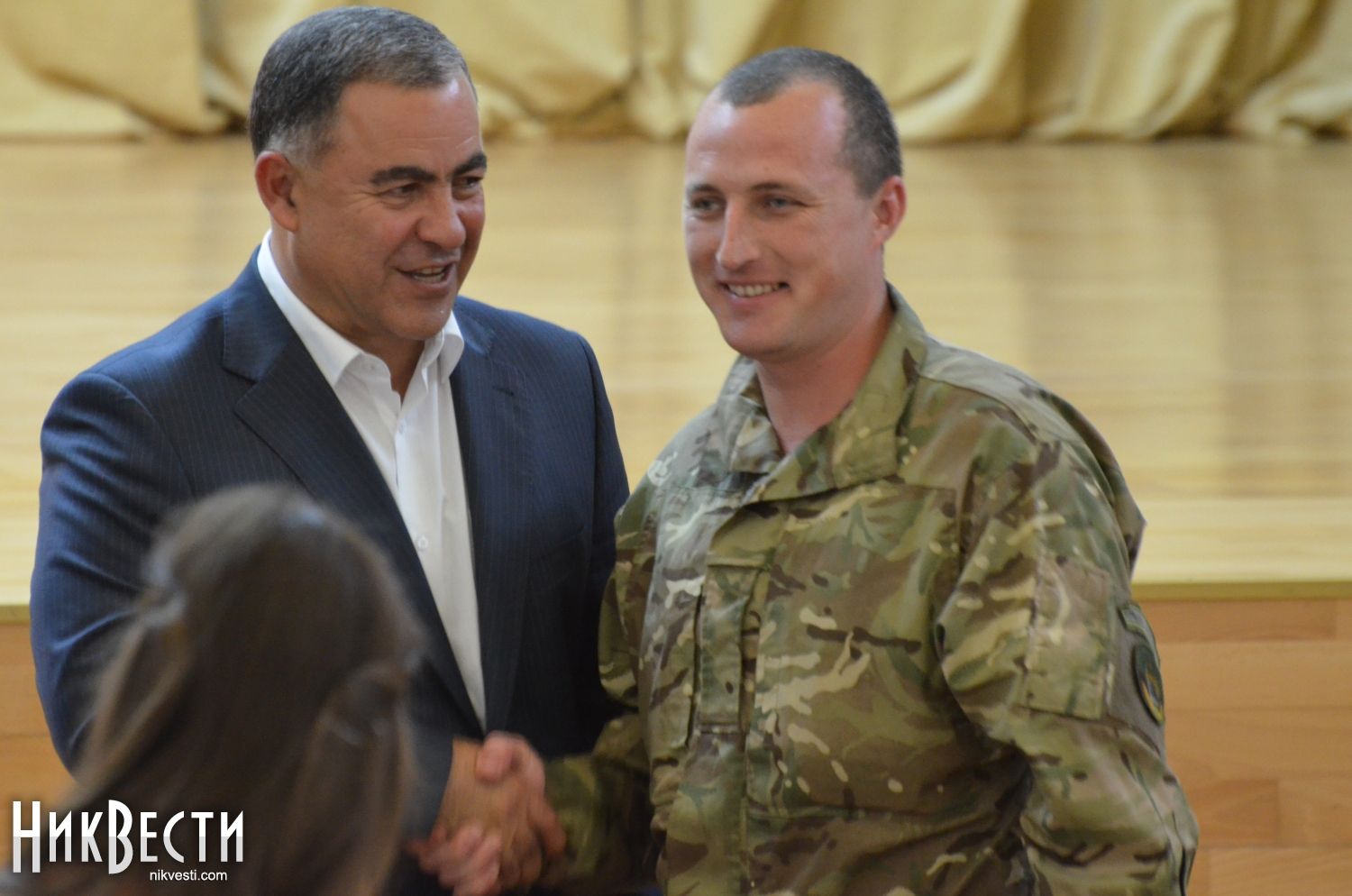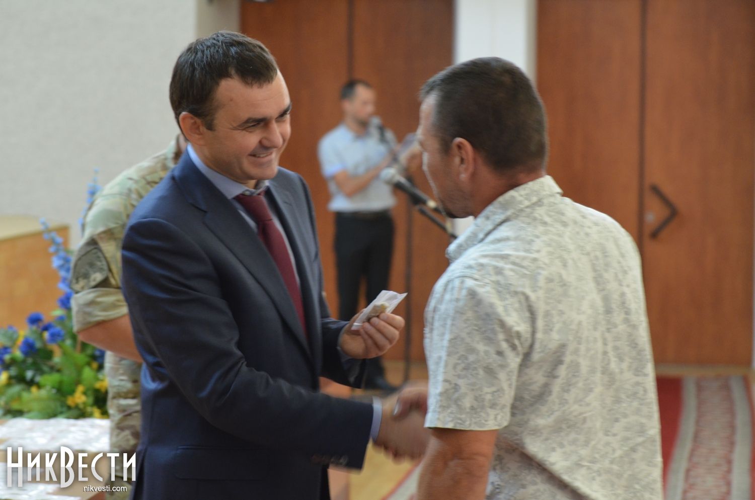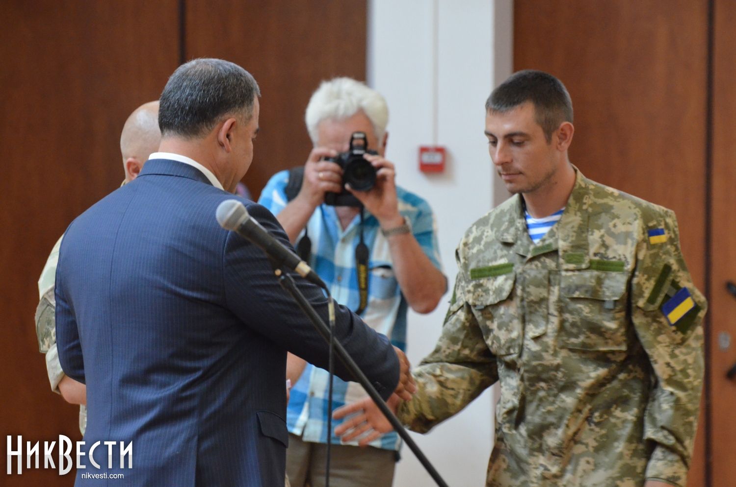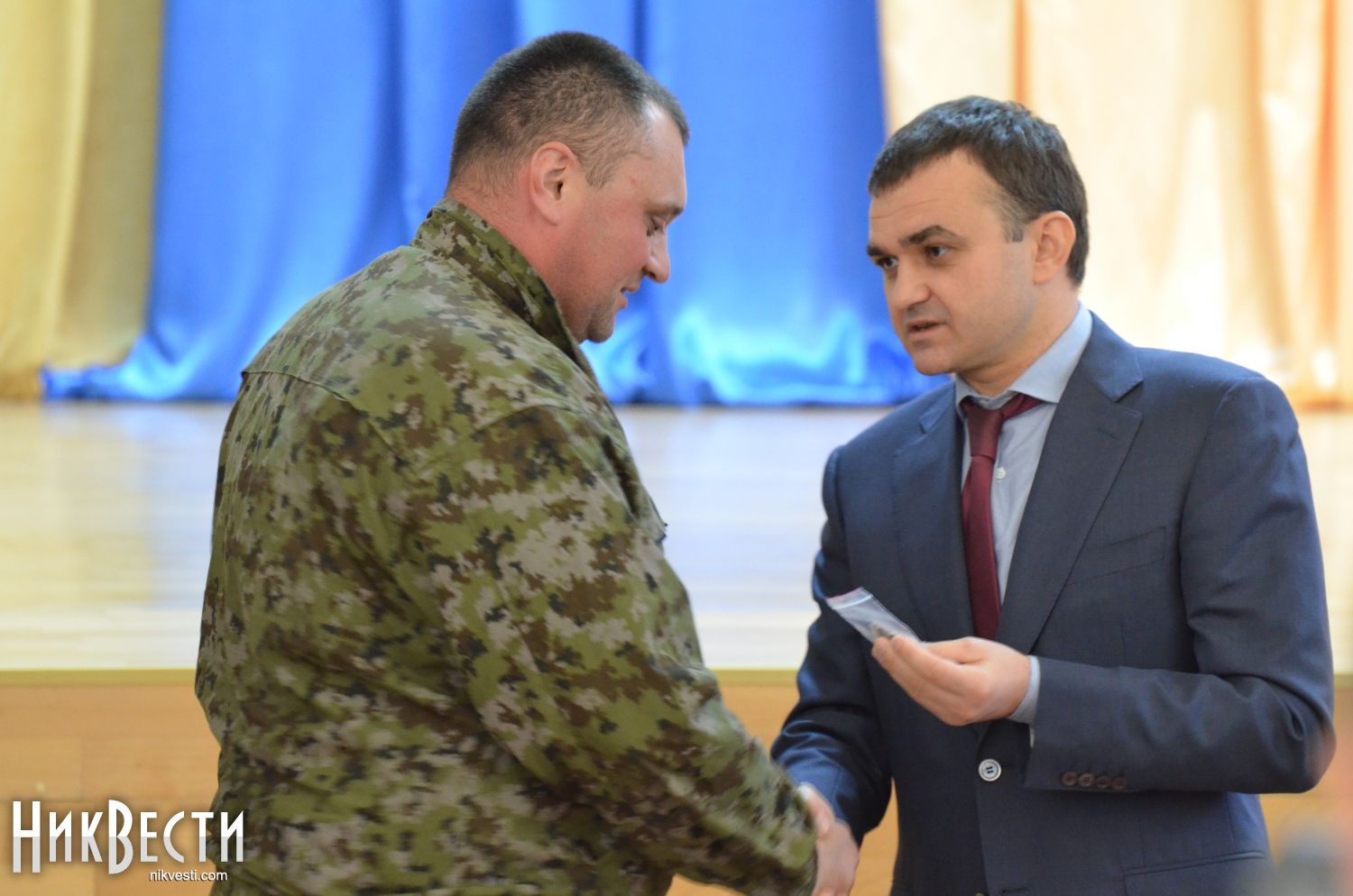 После этого началась церемония награждения николаевских военнослужащих нагрудными знаками «Участник АТО». Помимо Вадима Мерикова, медали вручали заместитель главы областного совета Александр Смирнов и николаевский городской голова Юрий Гранатуров.