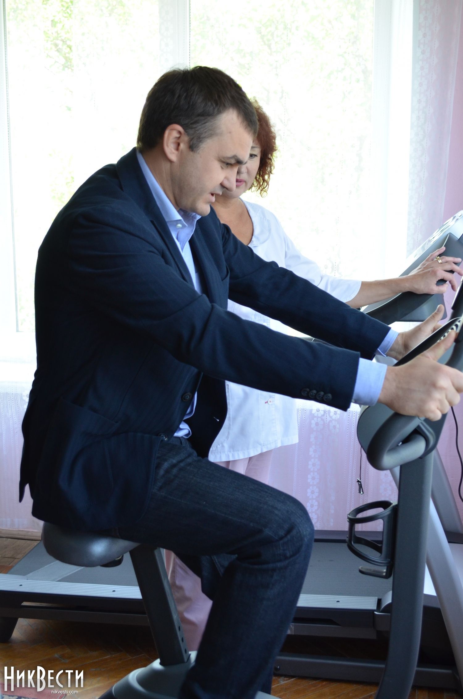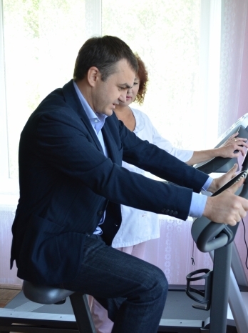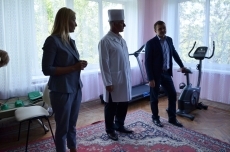 Помимо комнаты для реабилитации, руководству области продемонстрировали кабинет лечебной физкультуры, где установлены тренажеры, необходимые для реабилитации.