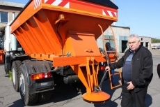 По его словам, такая техника есть в Киеве, где она очень хорошо себя зарекомендовала. Она комбинированная, это значит, что такая техника может как убирать снег, так и посыпать дороги противогололедной смесью. В одну машину можно загрузить около 12 тонн песка. В технику, которая была на предприятии до этого, загружалось значительно меньше песка.