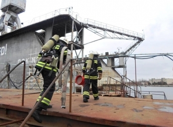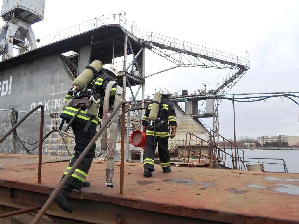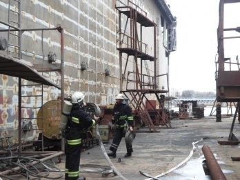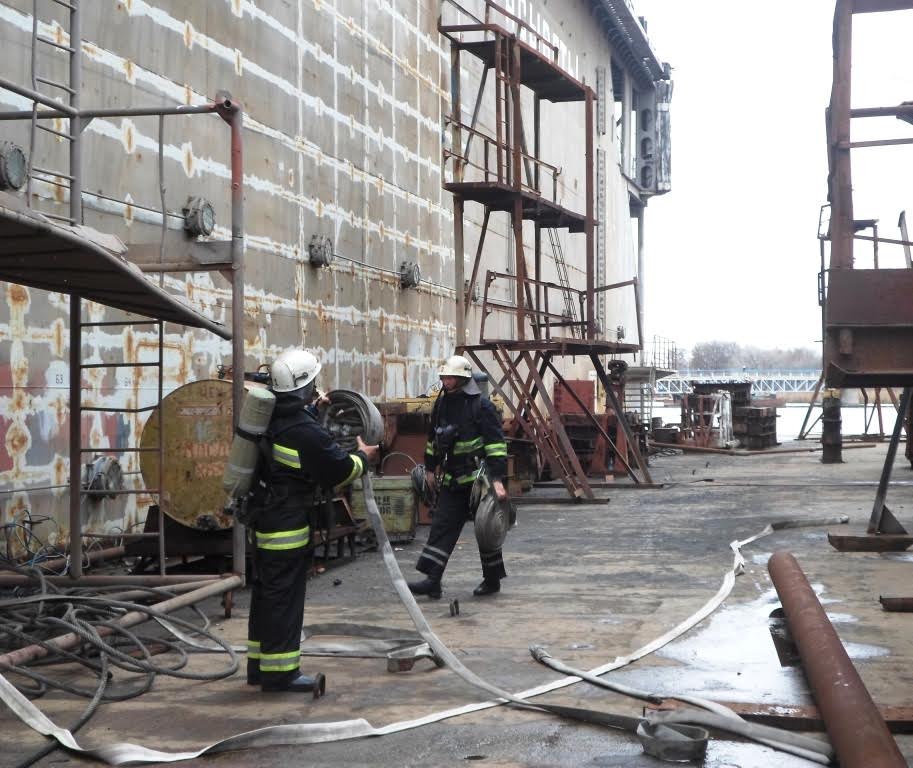 Вчера в Николаеве на «Судостроительном заводе имени 61 коммунара» спасатели провели тактико-специальные противопожарные учения совместно с экипажем ракетного катера «Прилуки», который на данный момент находится на доковом ремонте на предприятии.