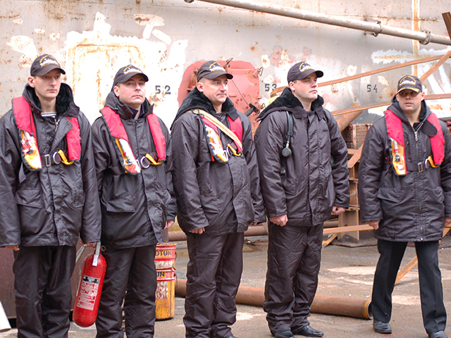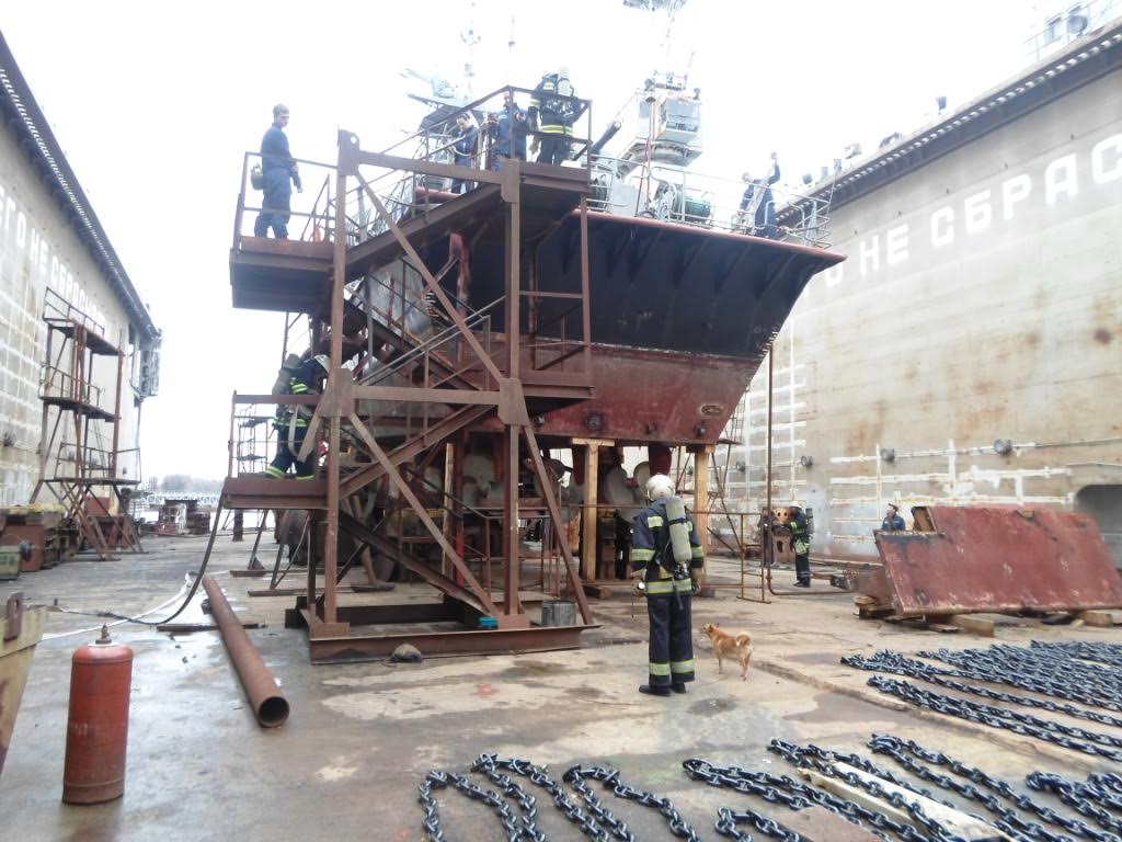Помощь в локализации условного пожара оказывала аварийно-спасательная группа экипажа Корабля морской охраны «Григорий Куропятников», который также находится в доковом ремонте.