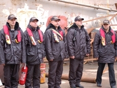 По плану учений в 11.00 на катере «Прилуки» была объявлена учебная пожарная тревога (условное возгорание в машинном отделении), сигнал о которой поступил в центральную диспетчерскую службу завода.