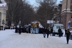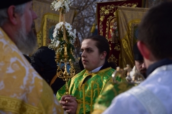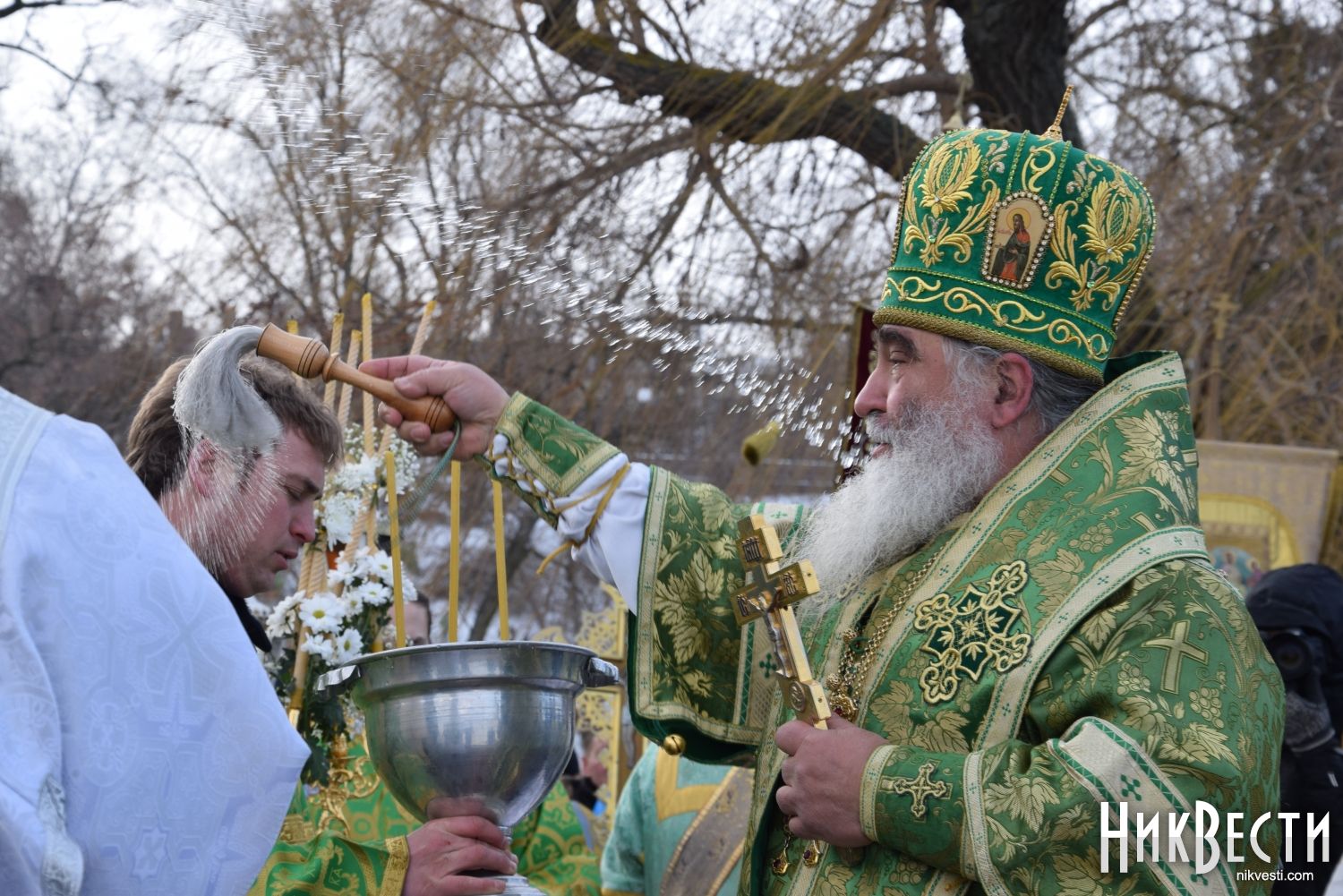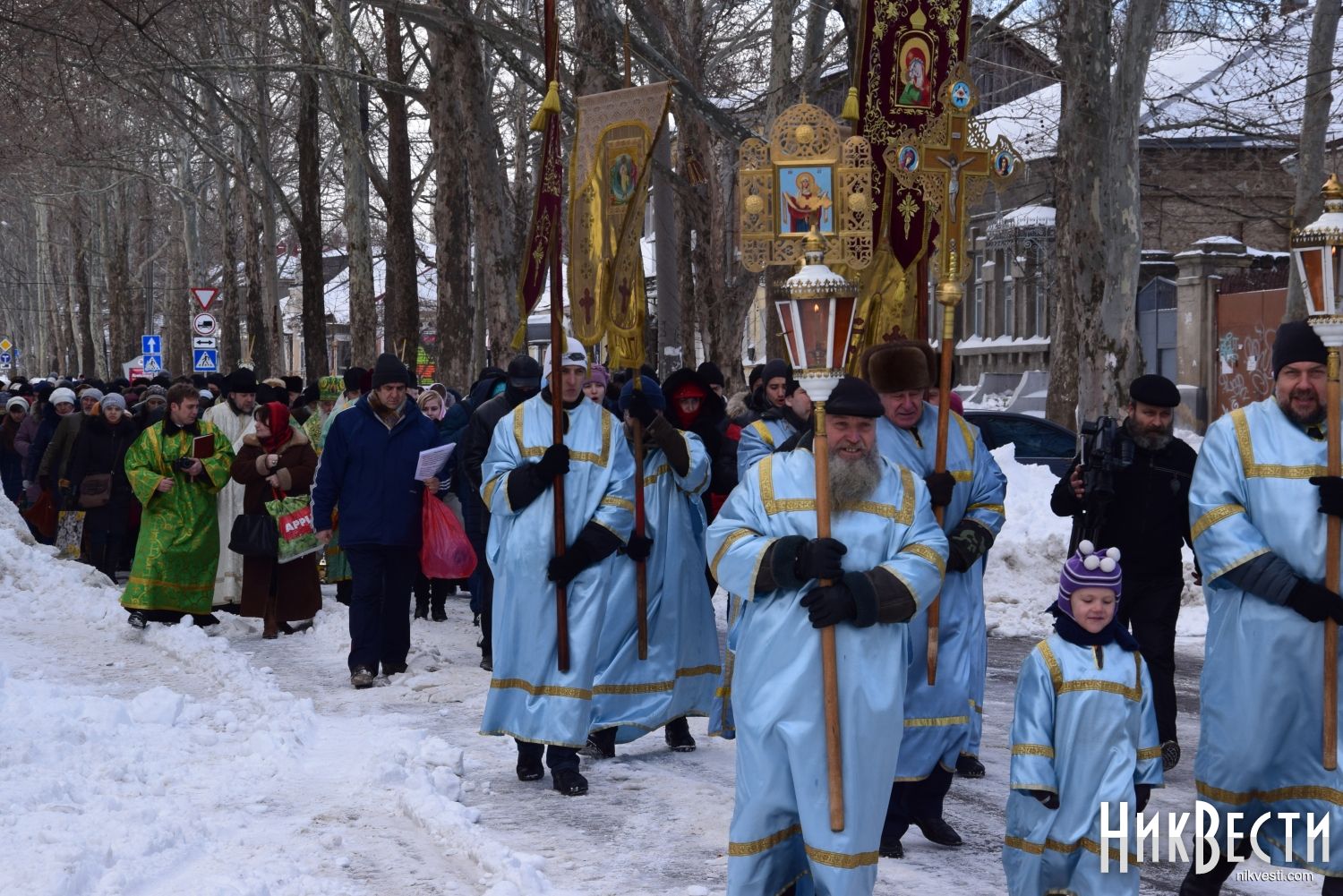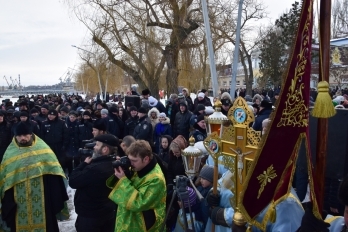 Перед этим горожане прошлись крестным ходом от Кафедрального Собора Рождества Пресвятой Богородицы к реке Ингул, где состоялся обряд освящения воды.
