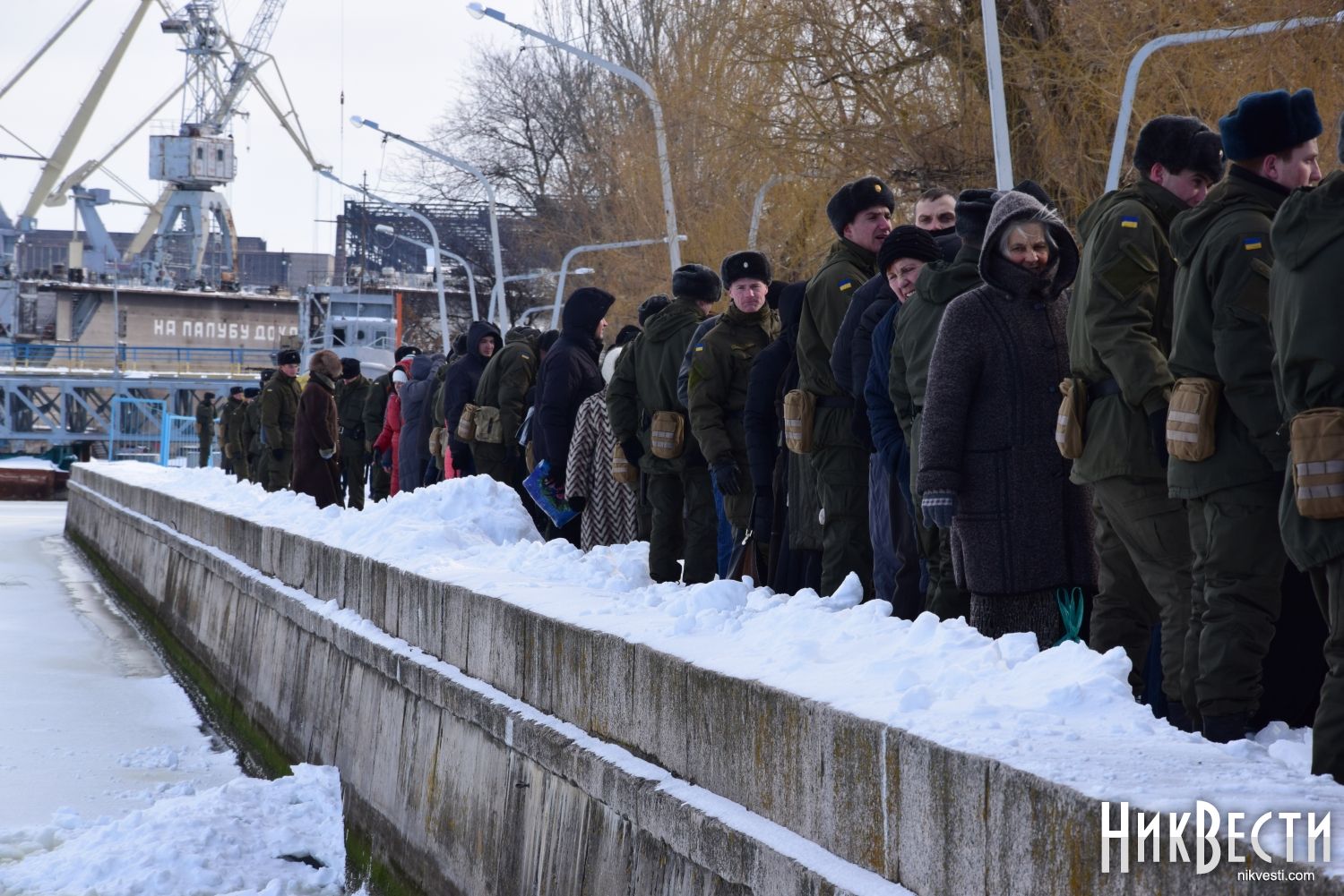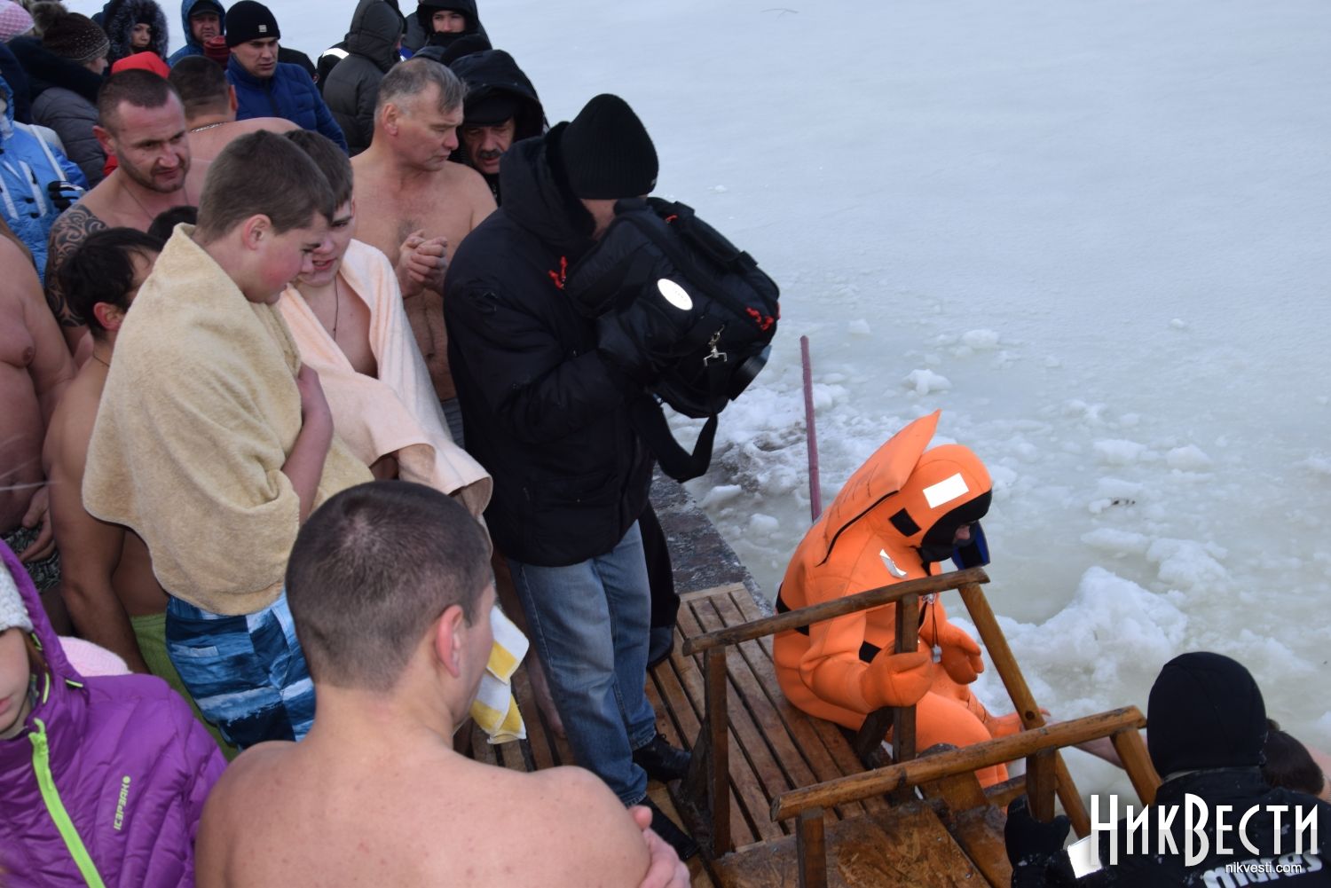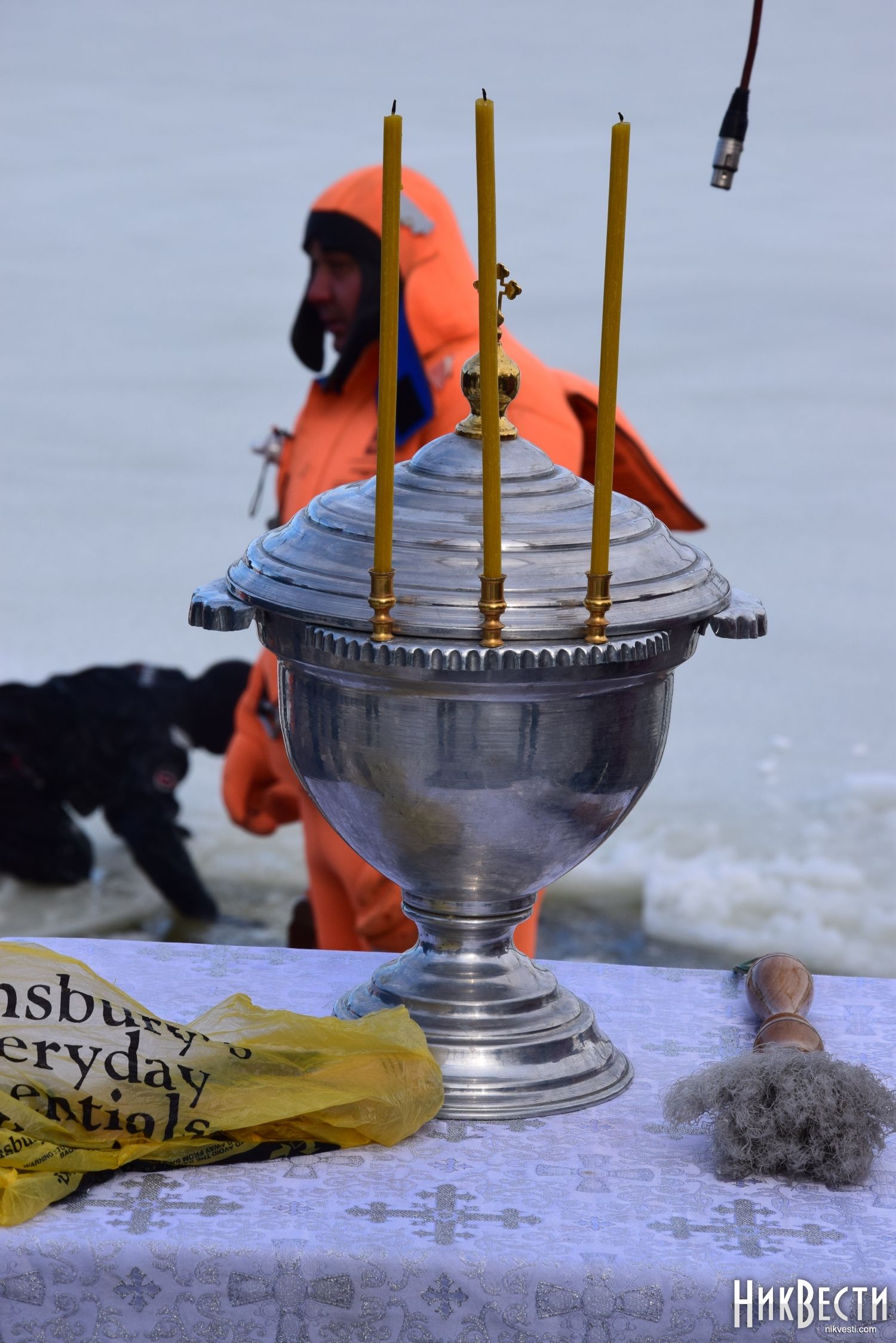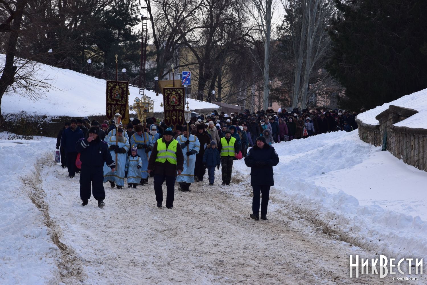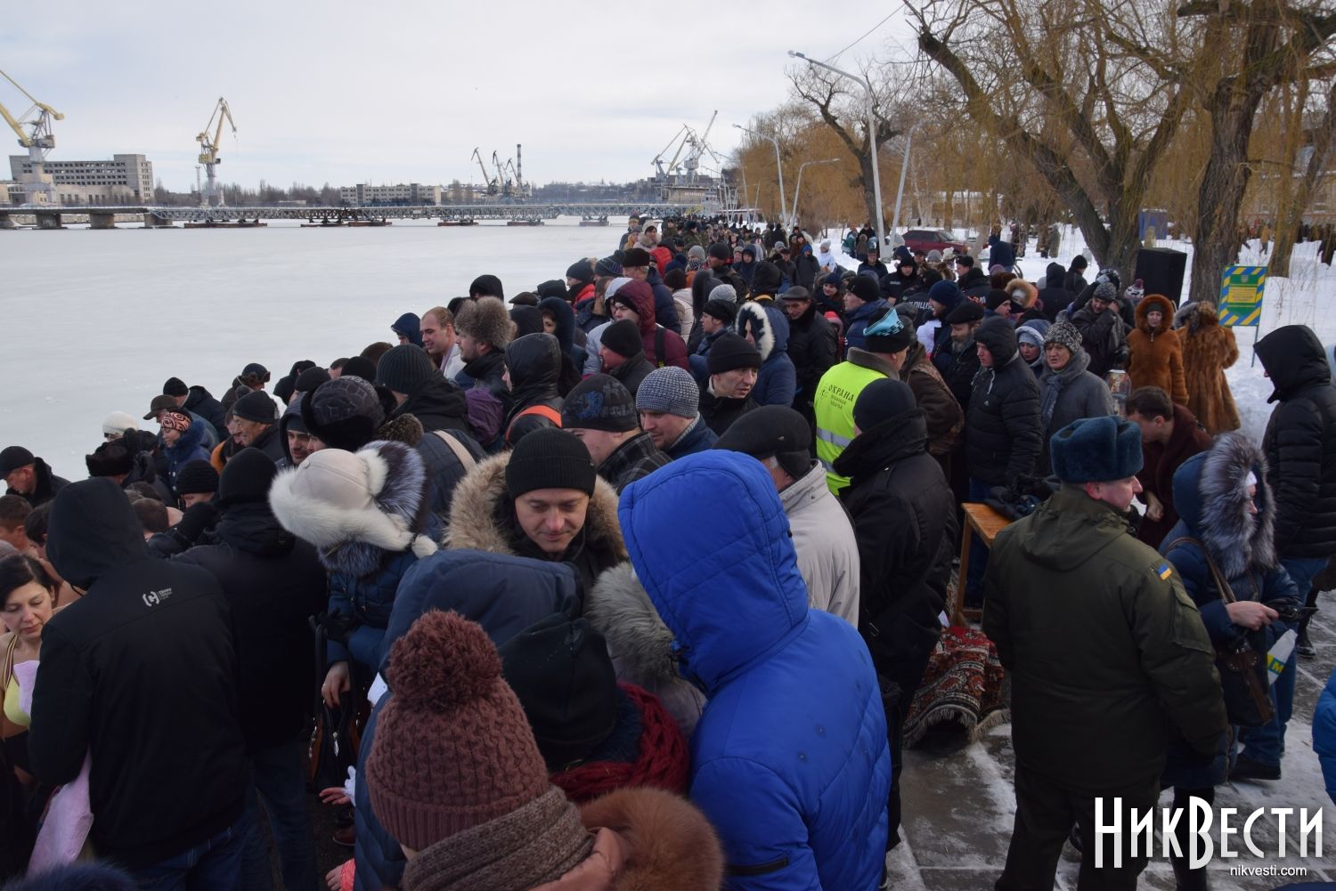 Многие николаевцы принесли с собой воду, ее освятил митрополит Николаевский и Очаковский Питирим. Считается, что в день Крещения, когда в храмах освящается вода, она делается нетленной и не портится много лет.