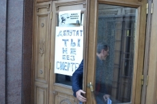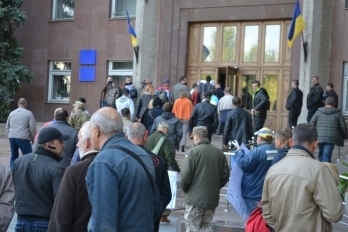 Пикетчики направились в сессионный зал облсовета, где сегодня продолжит работу внеочередная сессия.