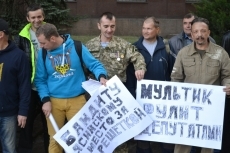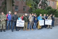Кроме того, участники митинга протестуют против хамского высказывания депутата от «Оппозиционного блока» Александра Ясинского в отношении воинов АТО и главы областного совета Виктории Москаленко на заседании внеочередной сессии 23 сентября.