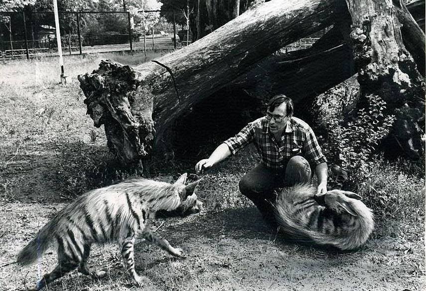 – Спасибо Андрей Коткин за присланную фотографию меня с полосатыми гиенами Каином и Магдой,1985 год. У меня этой фотки не было. Наши первые полосатые гиены, – прокомментировал он первый из снимков.