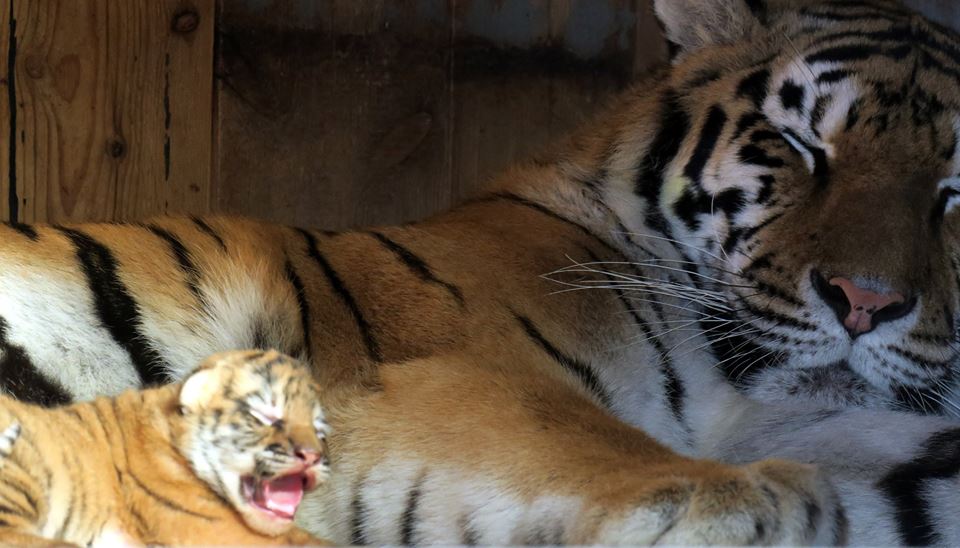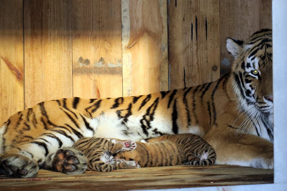 Пенелопа и Агриппина из Николаевского зоопарка стали мамами пятерых тигрят