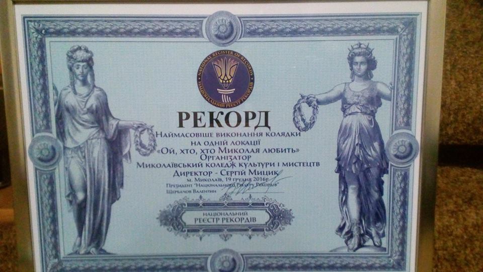 Для установления рекорда в Доме торговли собралась студенческая молодежь, учащиеся общеобразовательных и музыкальных школ Николаевщины и простые посетители магазина. Всего экспертом от Национального реестра рекордов Украины было зафиксировано 559 участников, принявших участие в исполнение колядки, и это стало рекордом Украины. Мероприятие состоялось под девизом «Николаев любит Николая».