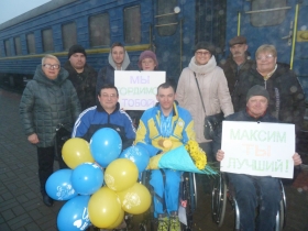 Спортсмена приветствовали представители Николаевской облгосадминистрации, Николаевского регионального центра по физической культуре и спорту инвалидов «Инваспорт», Николаевской специализированной детско-юношеской школы Паралимпийского резерва и Николаевского физкультурно-оздоровительного клуба инвалидов «Виктория», а также родные и друзья чемпиона.