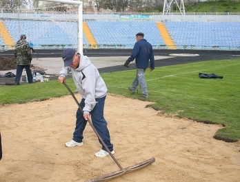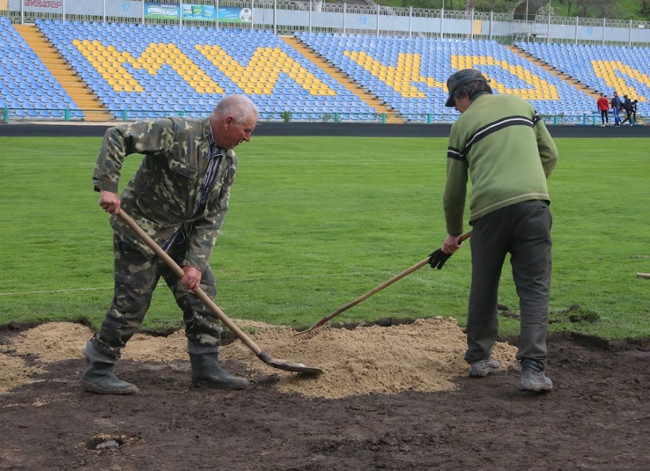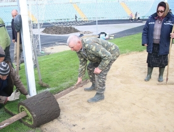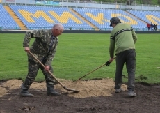 Под началом технического директора киевского «Динамо» и агронома Центрального городского стадиона Валентины Кулик рабочие начали преображать газон. К вечеру обе вратарские площадки было не узнать - вместо двух громадных проплешин там зазеленела трава.