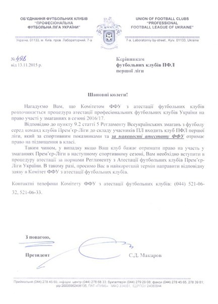 — В связи с тем что МФК «Николаев» располагается в лидирующей группе команд Первой лиги, ФФУ рекомендует нам пройти аттестацию для команд Премьер-Лиги! - написал он.