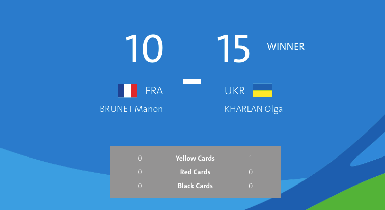 За бронзу Ольга Харлан сражалась с француженкой Манон Брюне и одержала победу со счетом 15:10.