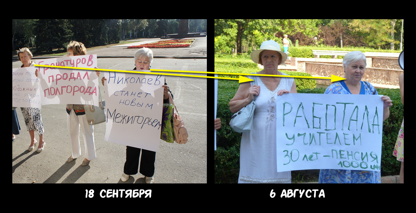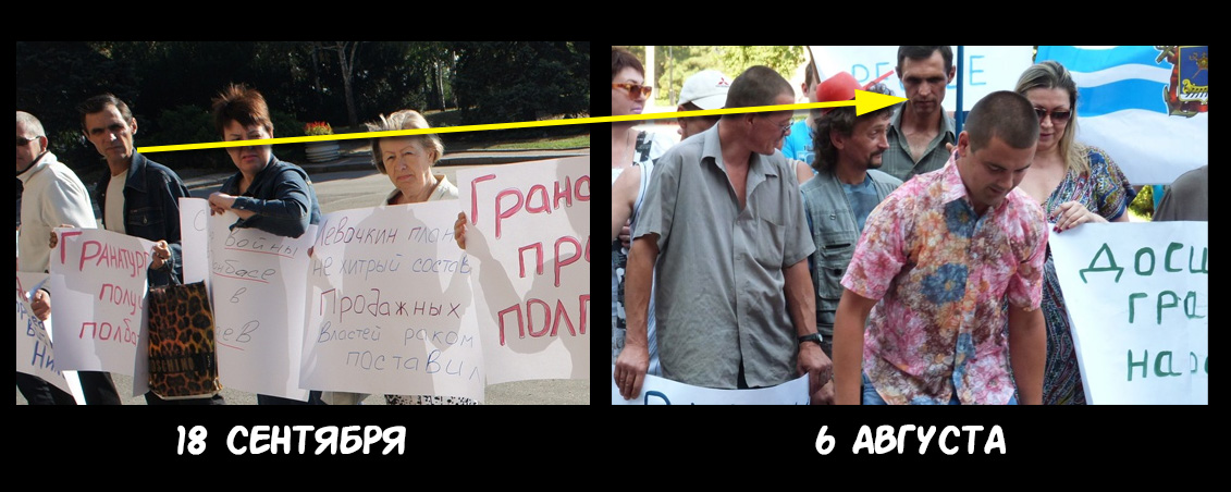 Сравнив фотографии участников митинга 6 августа против поднятия тарифов, который по имеющейся тогда информации был организован при участии российских спецслужб, можно убедится, что на сегодняшнем митинге были люди из той же компании.
