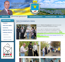В листовках, которые, видимо, разносятся по всему округу, кандидат в народные депутаты Феликс Ольшевский рассказывает о том, где, сколько и какие он сделал подарки своим избирателям. При этом показательным в своей «депутатской деятельности», о которой он также рассказывает и на своем сайте, он считает установку в духе любимой партии детских и спортивных площадок.