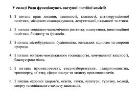 В прошлом городском совете было 11 депутатских комиссий на 90 депутатов. Сейчас — 54 депутата, а фракции «Самопомощь» и «Блок Петра Порошенко «Солидарность» предложили своим коллегам вместо 11 создать 6 депутатских комиссий, просто объединив некоторые из них. По информации НикВестей согласно предложенного проекта 3 комиссии (регламентная, коммунальная и гуманитарная) должны возглавить представители «Самопомощи», 2 комиссии (бюджетная, земельная) представители «Блока Петра Порошенко» и 1 комиссия (транспортная) представитель «Нашего края».