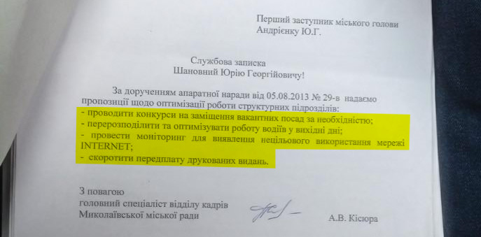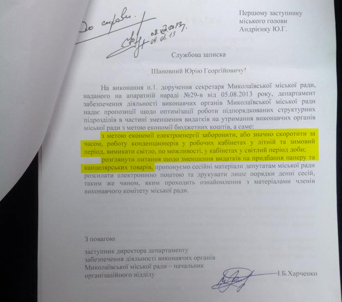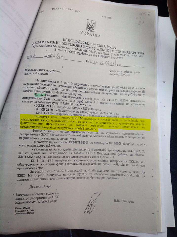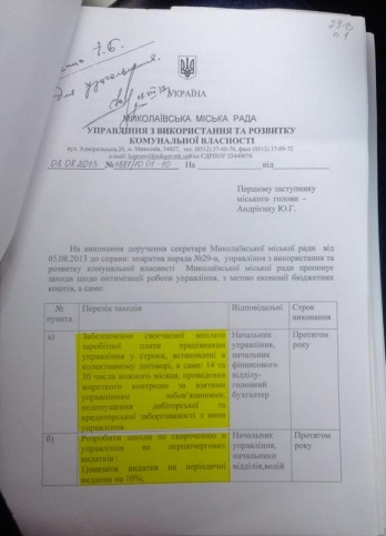 Александр Федорович! Еще до того, как вы возглавили город и заявили о грядущей реформе структуры мэрии, временно исполняющий обязанности городского головы, секретарь городского совета Владимир Коренюгин еще в августе 2013 года провел аппаратное совещание, где поручил всем подчиненным предоставить свои предложения по оптимизации работы структурных подразделений в части уменьшения расходов на их содержание с целью экономии бюджетных средств.