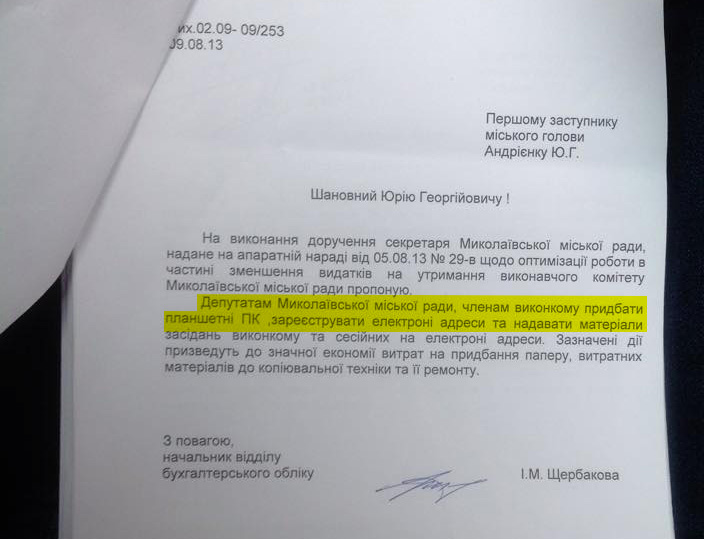 Бухгалтерия — это всегда отдельное царство в любом учреждении. Начальник бухгалтерского отдела мэрии Ирина Щербакова вместо того, чтобы дать предложения по оптимизации собственного подразделения, заявила о необходимости покупки планшетов и компьютеров для членов исполкома и депутатов, чтобы меньше средств тратить на бумагу.