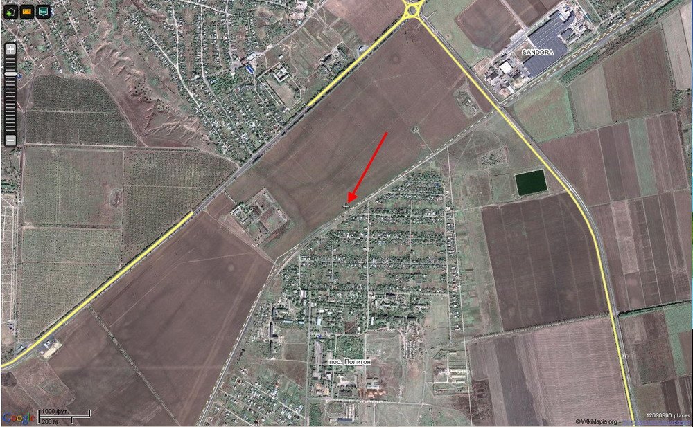 Внизу находилось мирное село Полигон, под траекторией к месту падения находились школа и сад, жилые дома.
