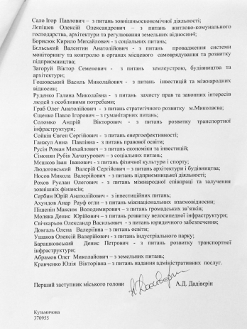 Александр Свечкарев – по вопросам юридического обеспечения. Он является членом комиссии по проведению служебного расследования на КП «Николаевкоммунтранс», созданной в декабре 2016 года.