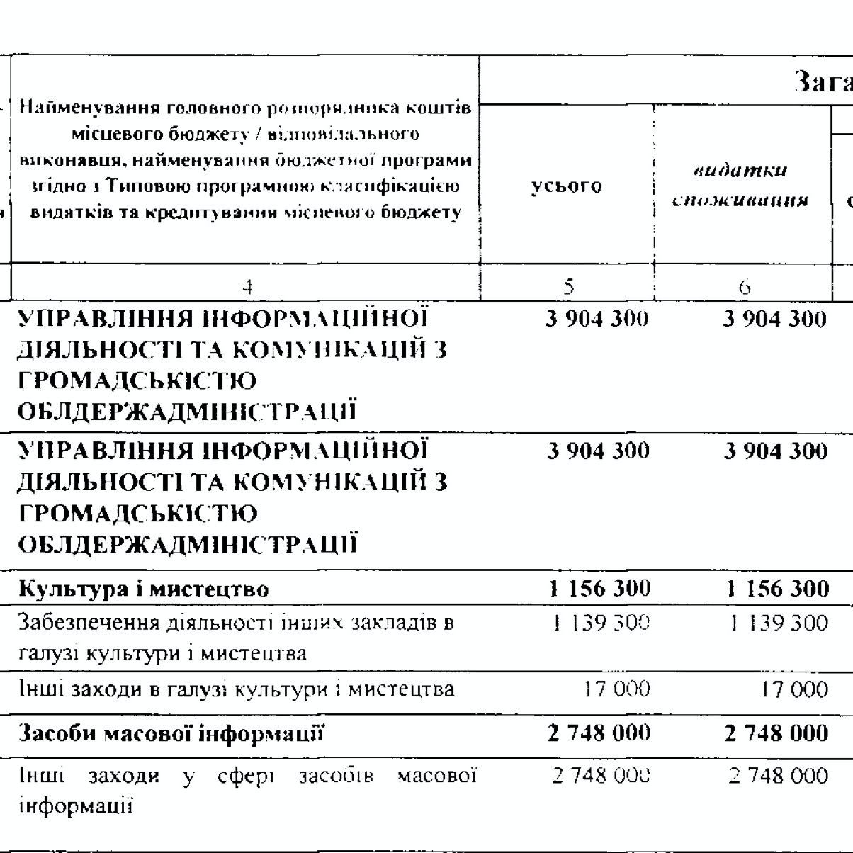 Проте, у той же час, бюджетом Миколаївської області Управлінню інформаційної діяльності та комунікацій з громадськістю Миколаївської ОДА передбачена сумма у розмірі 2 мільйони 748 тисяч гривен на «Інші заходиу сфері засобів масової інформації».