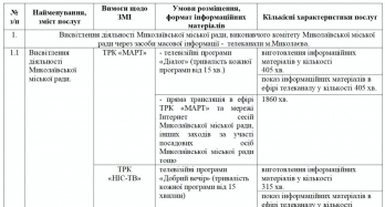 Станом на 1 березня договори на висвітлення діяльності Миколаївської обласнох ради не укладались, відповідно кошти на вказані послуги не використовувались.