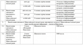 - Висвітлення оперативної інформації про діяльність органів місцевого самоврядування міста Миколаєва - 5,8 млн грн;