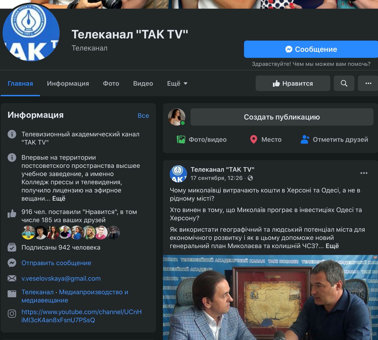 Відповідно до назви пошти (v.veselovskaya), можна допустити, що вона належить Вікторії Веселовській - на її особистій сторінці у соцмережі вказано, що вона є продюсером телеканалу “ТАК-ТВ”.