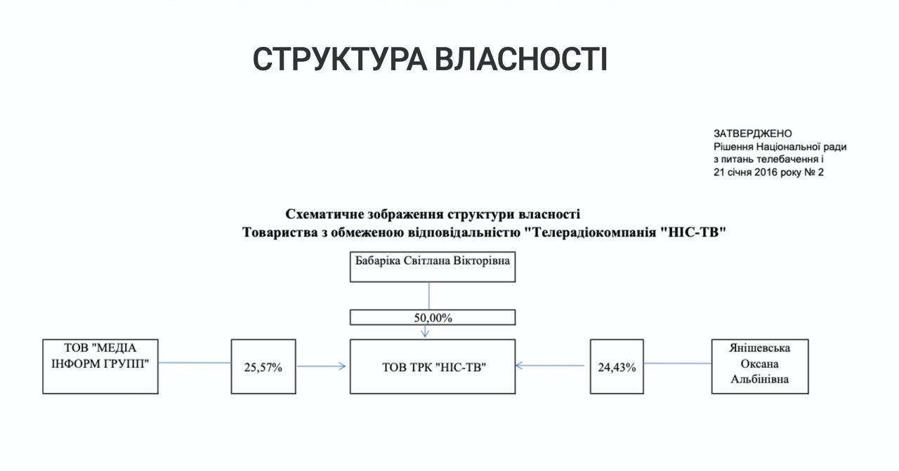 Телеканал “НИС-ТВ” - єдиний серед проаналізованих приватних телеканалів (ТРК “МАРТ” - комунальний телеканал Миколаївської міської ради, а “UA:Миколаїв” - суспільний мовник) повністю опублікував структуру власності на своєму сайті, надавши детальну інформацію про бенефіціарних власників. Також на сайті телеканалу доступні копія ліцензії та редакційного статуту.