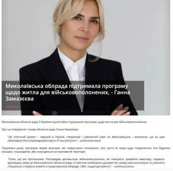 Миколаївська облрада підтримала програму щодо житла для військовополонених, - Ганна Замазєєва