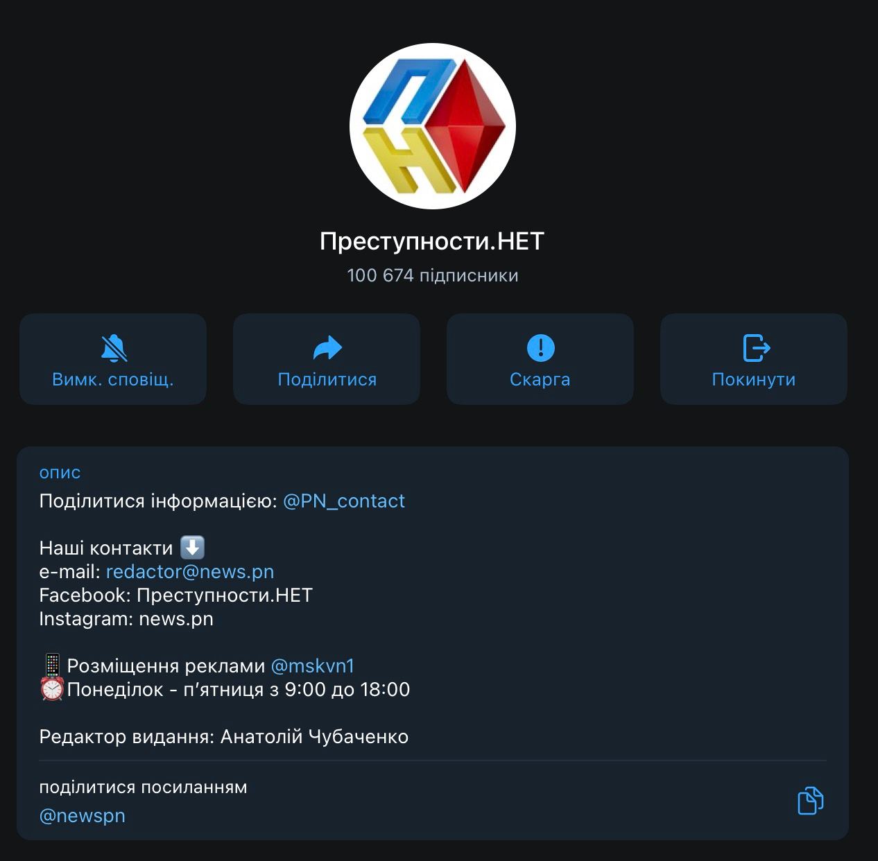 В описі каналу вказані контакти та ім’я головного редактора, посилання на сторінки у фейсбуці та інстаграмі, а також часи роботи видання. Пости у каналі «Преступности.НЕТ» публікуються українською мовою.