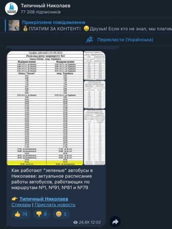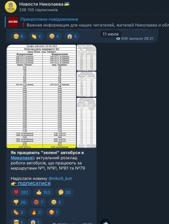 11 липня цей канал так само скопіював публікацію з каналу «Новости Николаева» про графік руху громадського транспорту.
