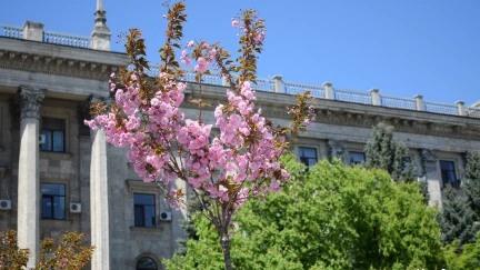 В Николаеве на Соборной площади зацвели молодые деревья в кадках