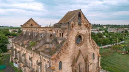 Житель Николаева Александр Миняйло опубликовал фотографии построенного в селе Степовое еще в конце 19 века полуразрушенного костела Святых Петра и Павла с высоты птичьего полета.